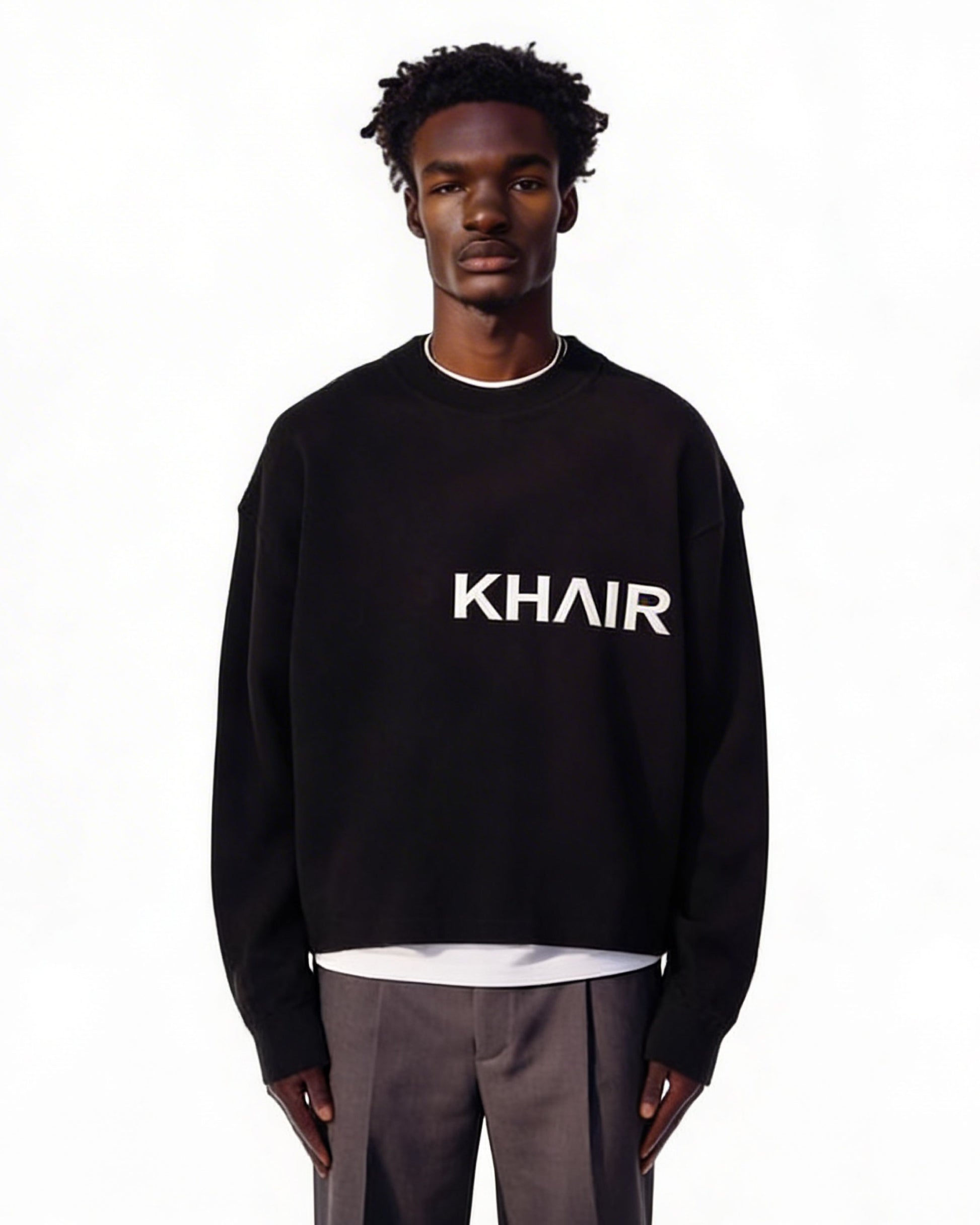 325 GSM heavyweight cotton // Relaxed fit with slightly cropped body // Signature KHAIR logo front and back